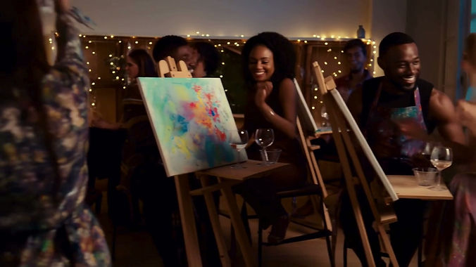 - Guided Paint & Sip: Couples create connected canvases guided by affirmations and music.